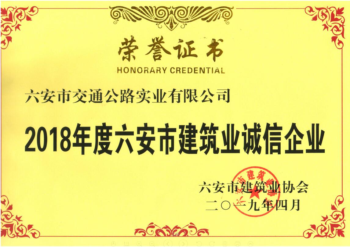 六安市建筑業(yè)誠(chéng)信企業(yè)