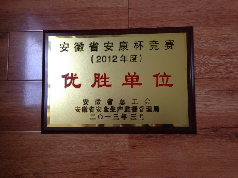 近日,實(shí)業(yè)公司榮獲由安徽省總工會(huì)、安徽省安全生產(chǎn)監(jiān)督管理局頒發(fā)的安徽省2012年安康杯競(jìng)賽“優(yōu)勝單位”稱號(hào)。